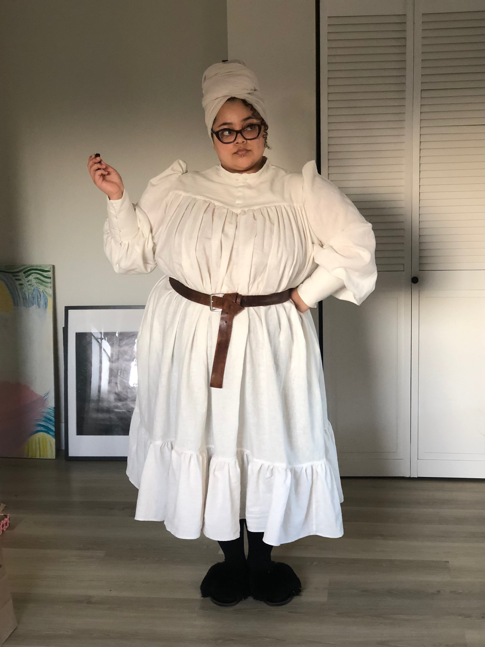 The Sophie Dress is a late Victorian inspired historybounding dress. This belted tent dress is a versatile piece that can be paired and/or layer with other historical or modern clothes. It's the perfect timeless elegant but playful touch to your turn of the century wardrobe.