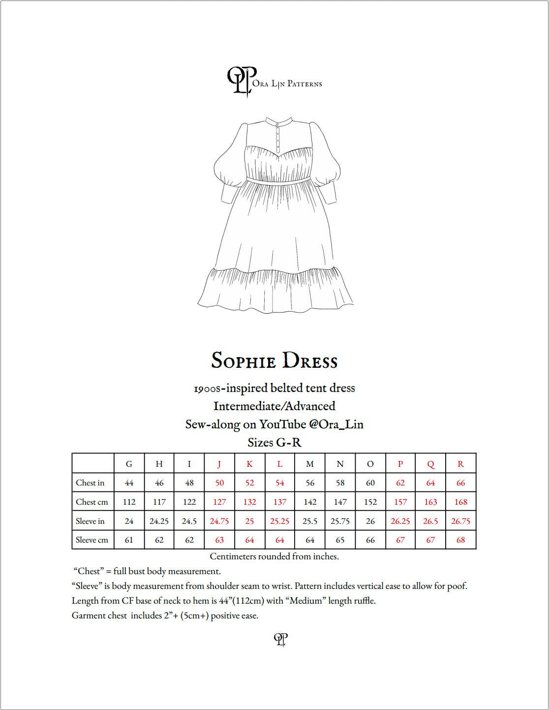 Sophie Extended Size Range Victorian Style Tent Dress pdf Sewing Pattern